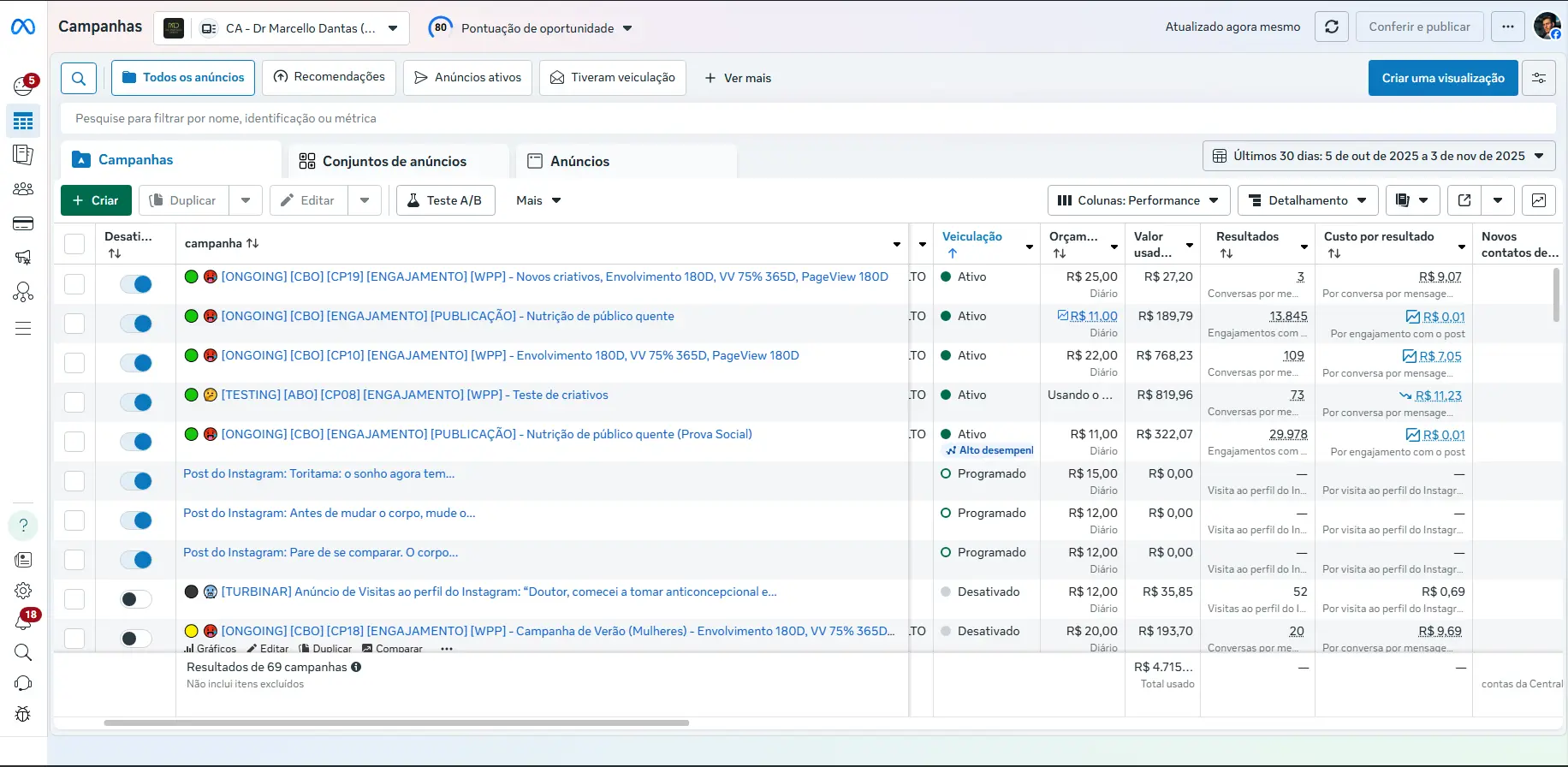 A primeira fase é quase forense. Mergulhamos na sua presença digital, campanhas passadas, criativos, redes sociais, concorrência, e até no comportamento do seu público. Aqui, desenterramos oportunidades escondidas e possíveis problemas que estão limitando o seu resultado.